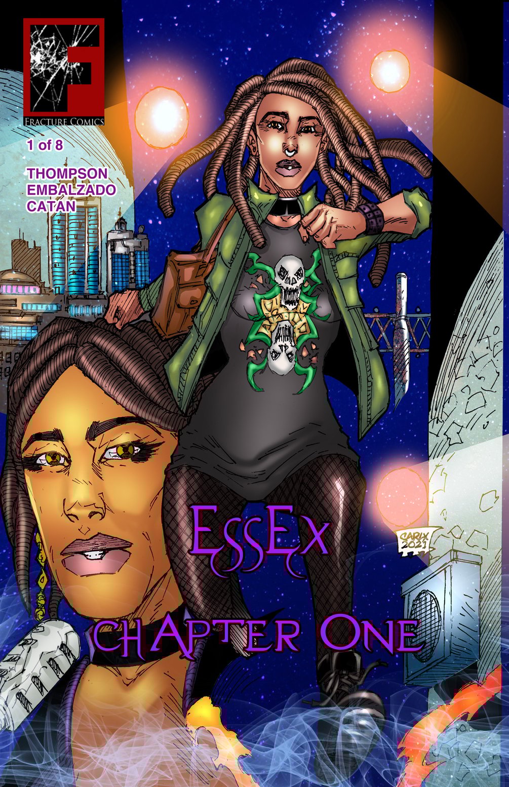 Essex is an 8 issue series set in the same universe as Hellfire. It follows 18 year old Monica Marie Essex, a magic user struggling with bipolar disorder. After a major betrayal to the magic community, she seeks retribution from the one responsible.